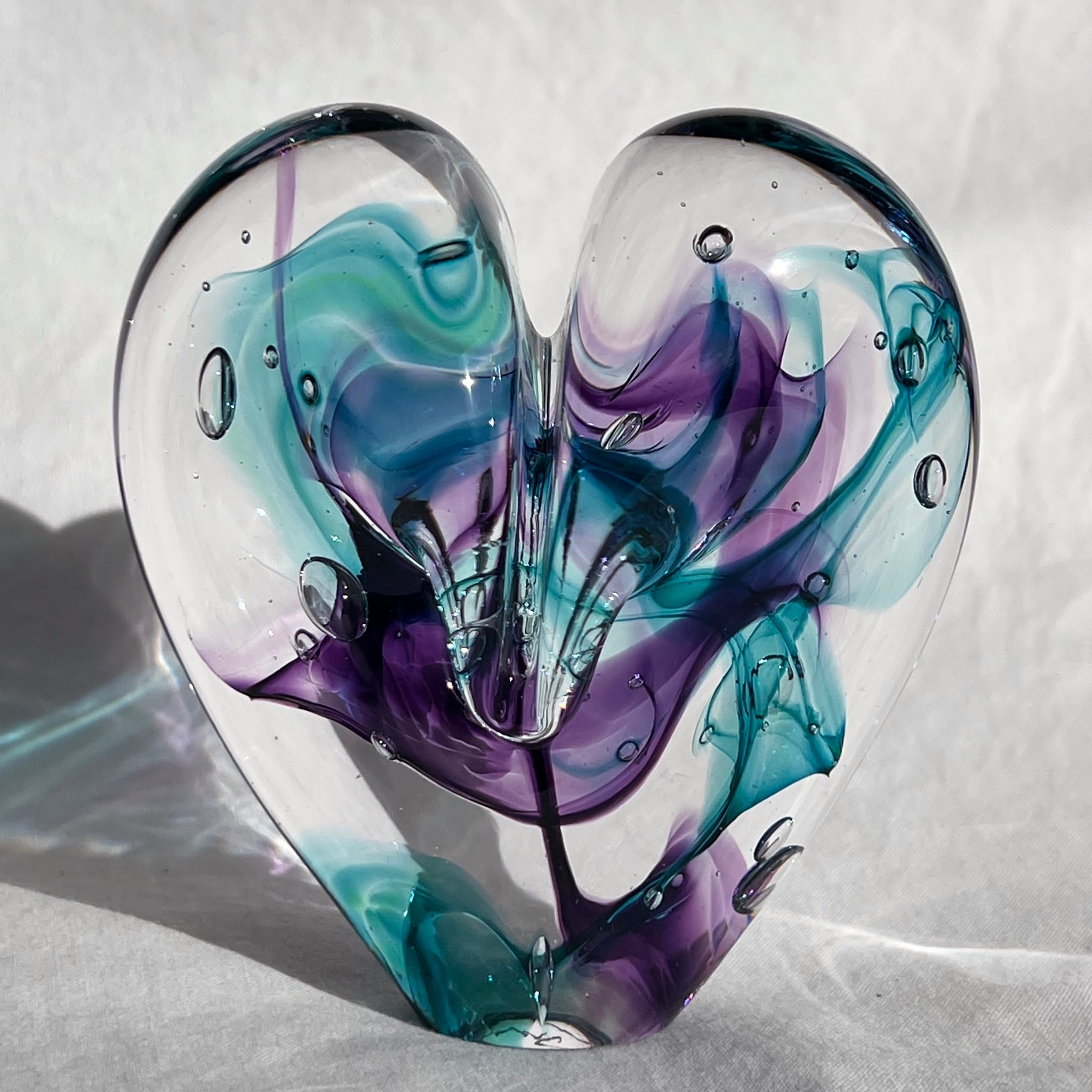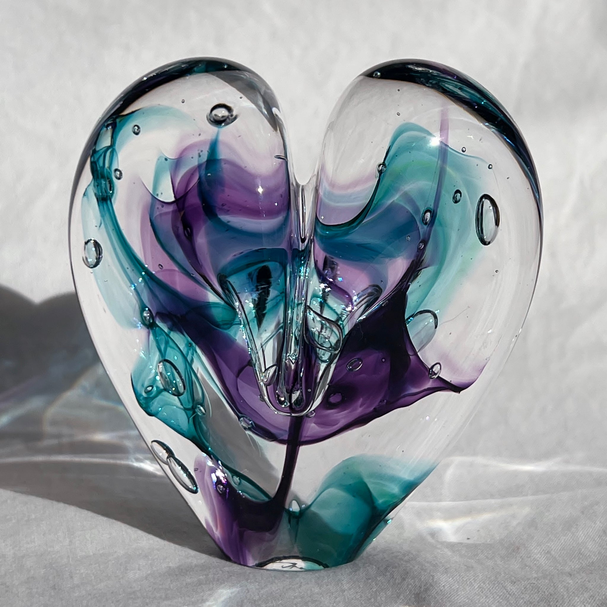 3.5 inches tall - Blown Glass Jewel Tone Heart